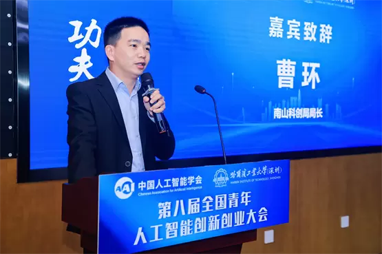 大会伊始,深圳市南山区科创局局长曹环为大会致开幕词。他首先代表南山区科创局对本次大会的举办表示热烈祝贺,随后介绍了南山区在支持人工智能创新创业方面具备的丰富科创资源以及雄厚的产业基础。一直以来,南山区科创局持续释放科技创新动能,优化创新创业营商环境,着力推动知识产权保护,加速培育科技孵化载体,精准提供科技金融服务,加速汇聚创新人才。南山区先后获批“国家知识产权强县示范县”、全国首批、全市唯一“全国商业秘密保护创新试点地区”,“广东省知识产权服务业集聚发展示范区”。截至2023年6月,全区备案孵化载体达280家,2023年度新增国家级孵化器3家,国家级孵化器总数达17家,占全市36.2%。他表示欢迎优秀人才及团队汇聚南山。