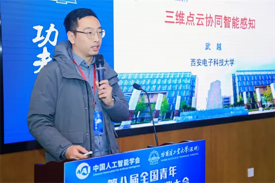 往届大赛创新组获奖者、陕西省青年科技新星、CAAI青工委秘书长、西安电子科技大学武越副教授作了题为《三维点云协同智能感知》的报告分享。他介绍了点云技术的基础、获取方法,强调了其在自动驾驶、城市规划、国防安全等领域的广泛应用,着重讲解了点云配准的难点和多视角、多模态情景下的处理方法,并提出了将演化计算应用于点云配准的创新性解决方案。