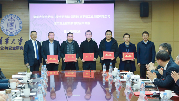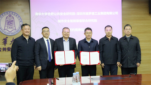 12月18日,清华大学合肥公共安全研究院(简称“清华合肥院”)与深圳市施罗德工业集团有限公司(简称“施罗德”)共建“清华合肥院-施罗德城市安全智能装备联合研究院”(简称“联合研究院”)签约揭牌仪式在清华合肥院隆重举行。淮南市经济技术开发区管委会书记、主任程启涛,淮南市经济技术开发区管委会副主任姚多智,清华合肥院常务副院长苏国锋、副院长梁光华,施罗德董事长宋有聚、集团办主任毛国华等领导及嘉宾参加签约揭牌仪式。会议由清华合肥院党委专职副书记范观兵主持。
