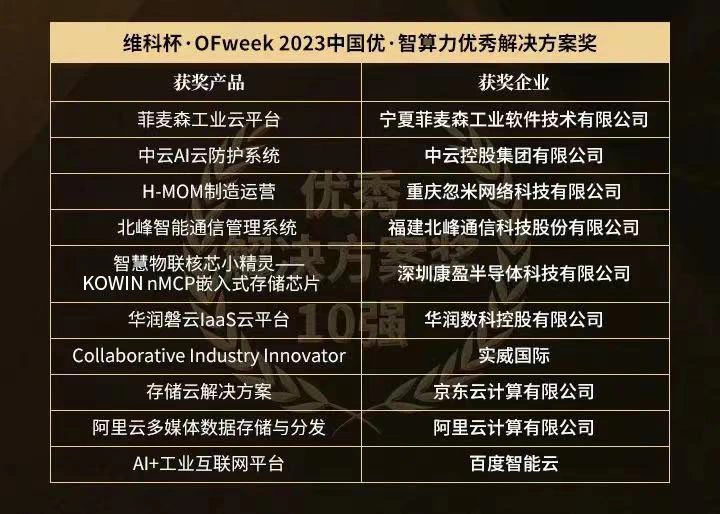 - “维科杯·OFweek 2023 中国优·智算力年度评选”获奖名单揭晓!