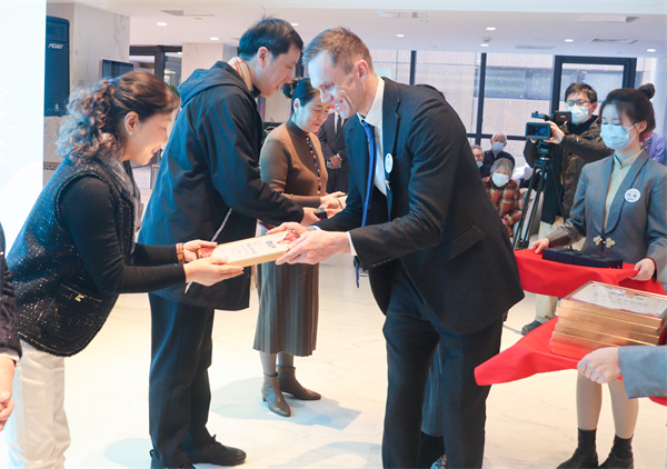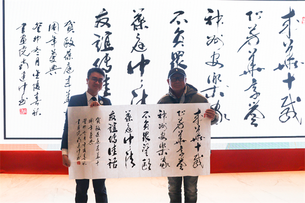 此次,欧葆庭的老朋友——金陵春秋书画院的南建中院长,特地为欧葆庭创作了一幅书法作品:来华十载正芳华,享誉神州安乐家。不负众望欧葆庭,中法友谊传佳话。南建中院长每年佳节都会来到欧葆庭,开展各类主题的笔会活动。此次在欧葆庭来华十周年之际,他将墨宝现场赠予南京机构,表达了他对欧葆庭的认可、赞美,以及期待。