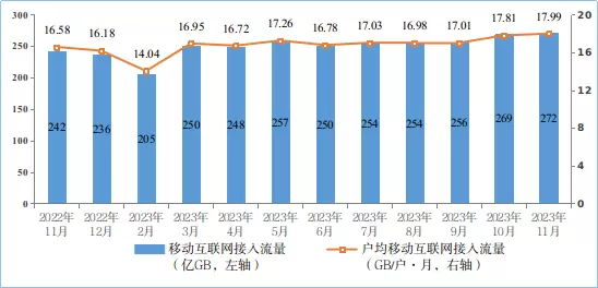 - 11月户均移动互联网接入流量创年内新高 达到17.99GB