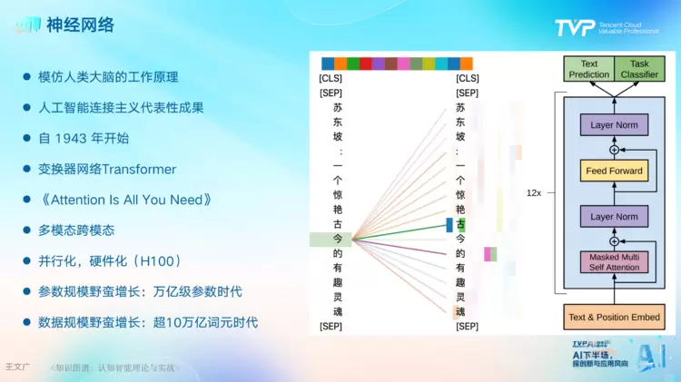 在《通用人工智能的现在与未来》主题演讲中,达观数据副总裁、腾讯云TVP 王文广首先追溯了从神经网络概念的最初提出,到如今这一技术在大模型上的延续。具体来说,目前大模型的发展主要呈现以下特点: