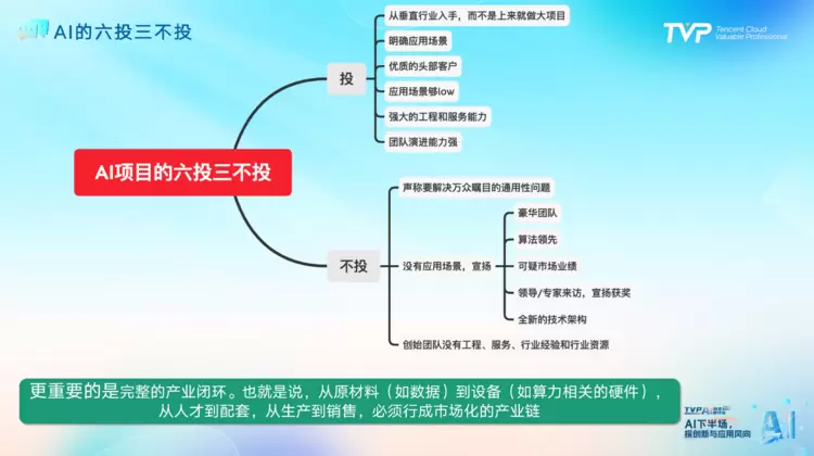 其一,AI决定技术上限,但不要盲目追求。基于AI的复杂性和高成本附加,可以的话在项目前期进行技术替代,如果进展顺利,在后续过程中再引入AI,这样可以降低投资人的风险预期;其二,除技术之外,新产品该如何取代旧产品的市场也值得创业者多思考。