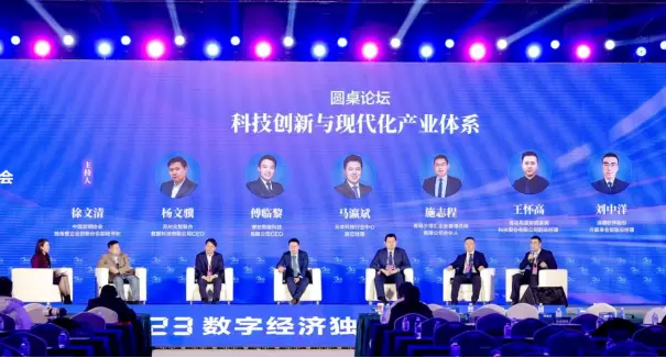 圆桌论坛环节,有屋智能副总经理王怀高围绕“科技创新与现代化产业体系”与行业专家、数字经济独角兽、隐形独角兽企业家代表等展开讨论,共同探讨数字经济产业未来的创新与实践发展。