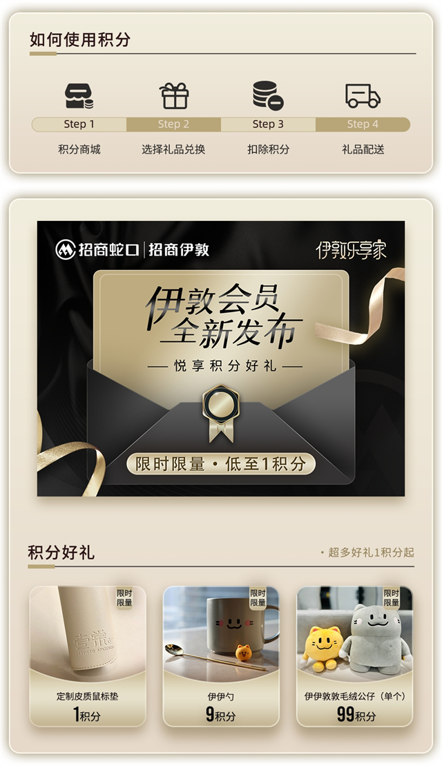在住户权益上,招商伊敦创新发布会员体系,将旗下公寓、酒店、精品商业等多业态进行融合,提供多样化积分形式及多种积分兑换福利,有效提升了用户黏度与用户忠诚度。