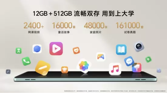 荣耀平板9还开启平板大内存普及风暴,带来12GB+512GB的大内存组合,能够储存上千部网课视频。借助RAM Turbo黑科技,荣耀平板9还能实现后台最多保活16个APP,并带来36个月不卡顿的流畅体验。除此之外,荣耀平板9还支持档位最大的8300mAh电池和35W超级快充组合,让孩子高效学习一整天。