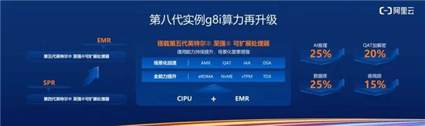 数据显示,其在数据全流程保护的基础上,AI推理性能提高25%、QAT加解密性能提升20%、数据库性能提升25%,以及音视频性能提升15%。