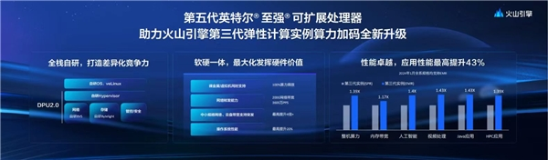 第五代至强® 可扩展处理器的实力,目前已在部分大厂进行了验证。火山引擎与英特尔合作升级了第三代弹性计算实例。