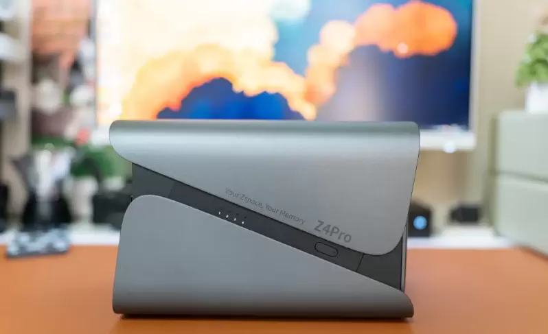 Z4Pro在外观上延续了Z4S的设计,全铝合金材质,造型圆润时尚。最大的区别在于侧面的品牌型号标识和颜色。在接口上,Z4Pro与Z4S保持一致,配备了USB3.2Gen2的C口和A口,以及eSATA、USB、两个2.5G有线网口、HDMI2.0接口等。