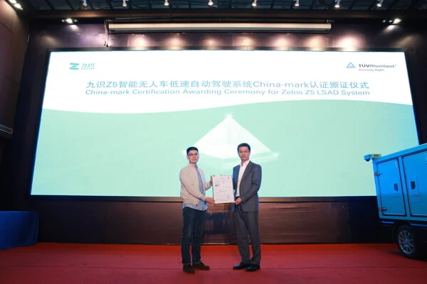 TÜV莱茵为九识智能Z5颁发低速自动驾驶系统China-mark认证证书