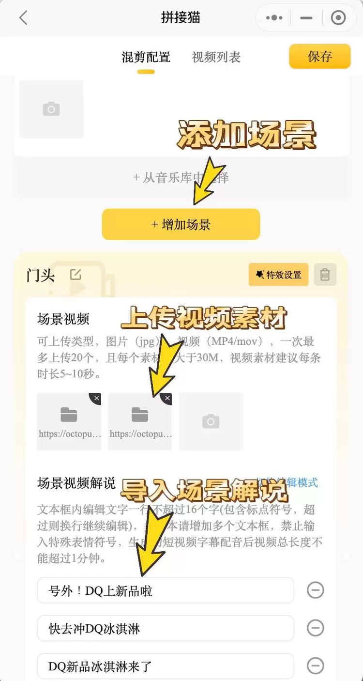 3.添加所需要的场景,导入相应场景的素材以及该场景的字幕解说