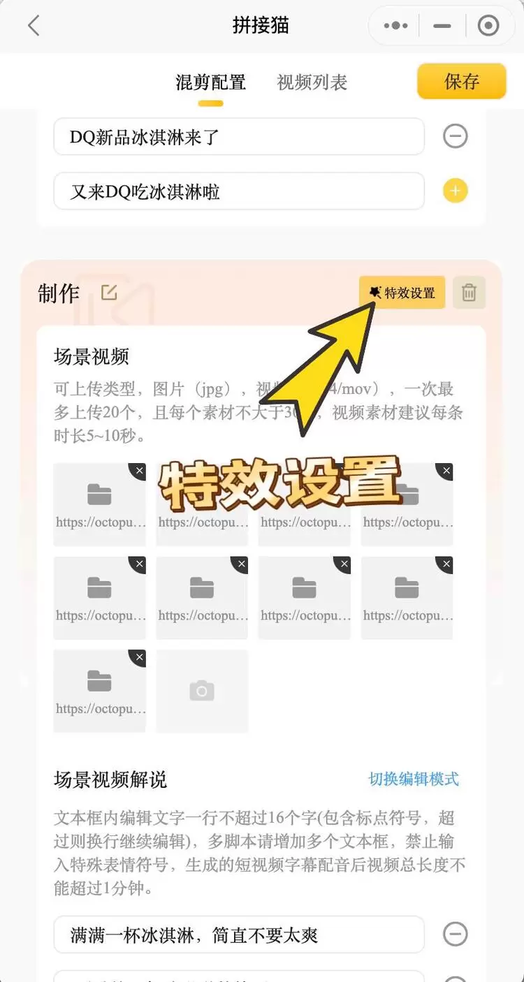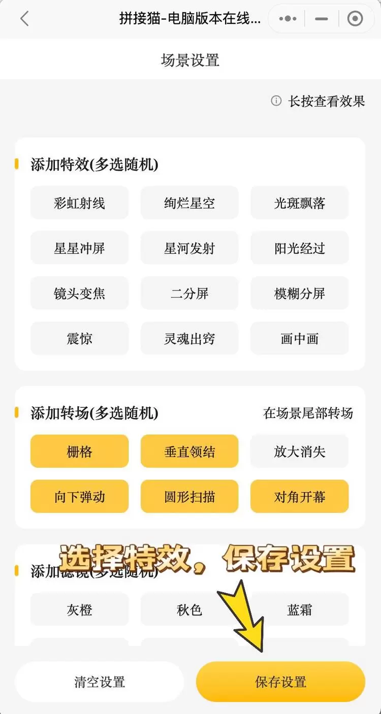 5.进入特效设置,增加特效能使画面丰富,去重效果会更好。