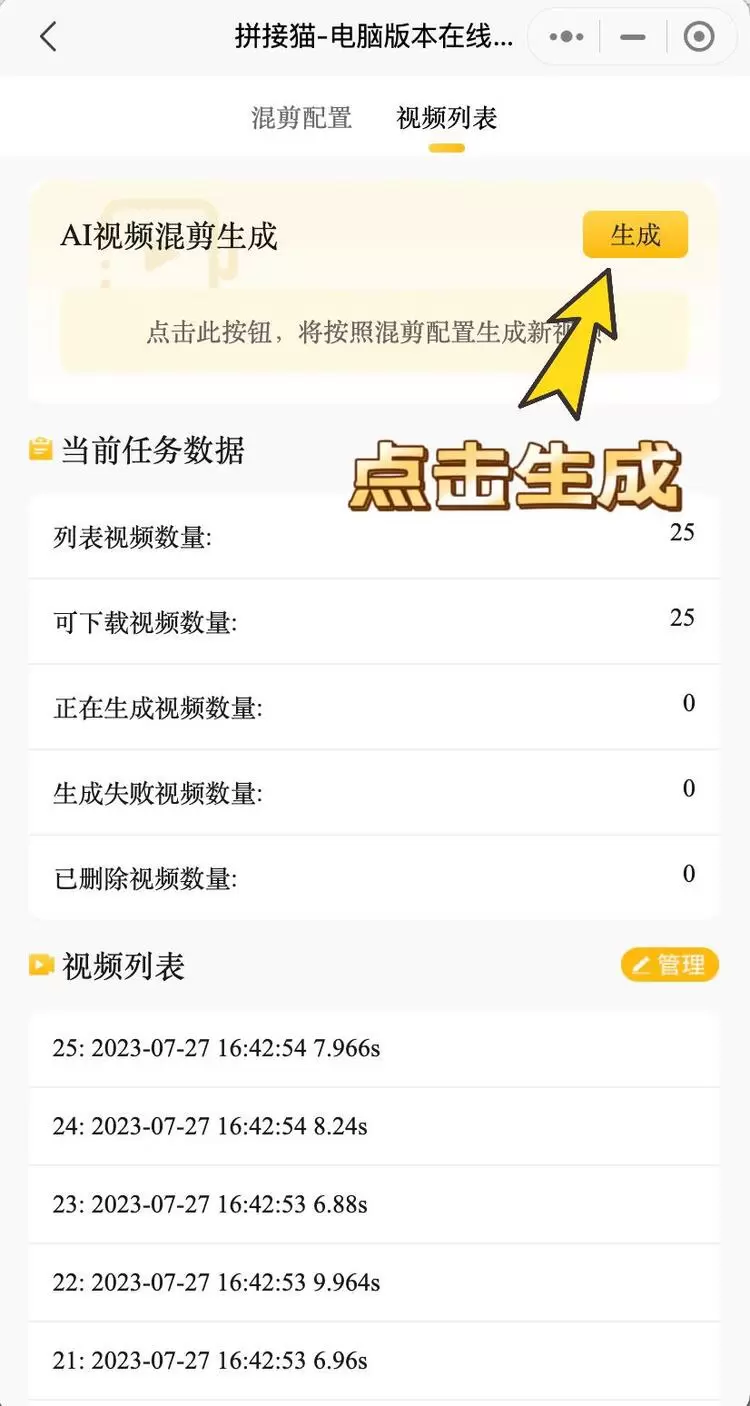 7.最后进入视频列表点击生成,下载,就可以得到多条去重完成的视频啦