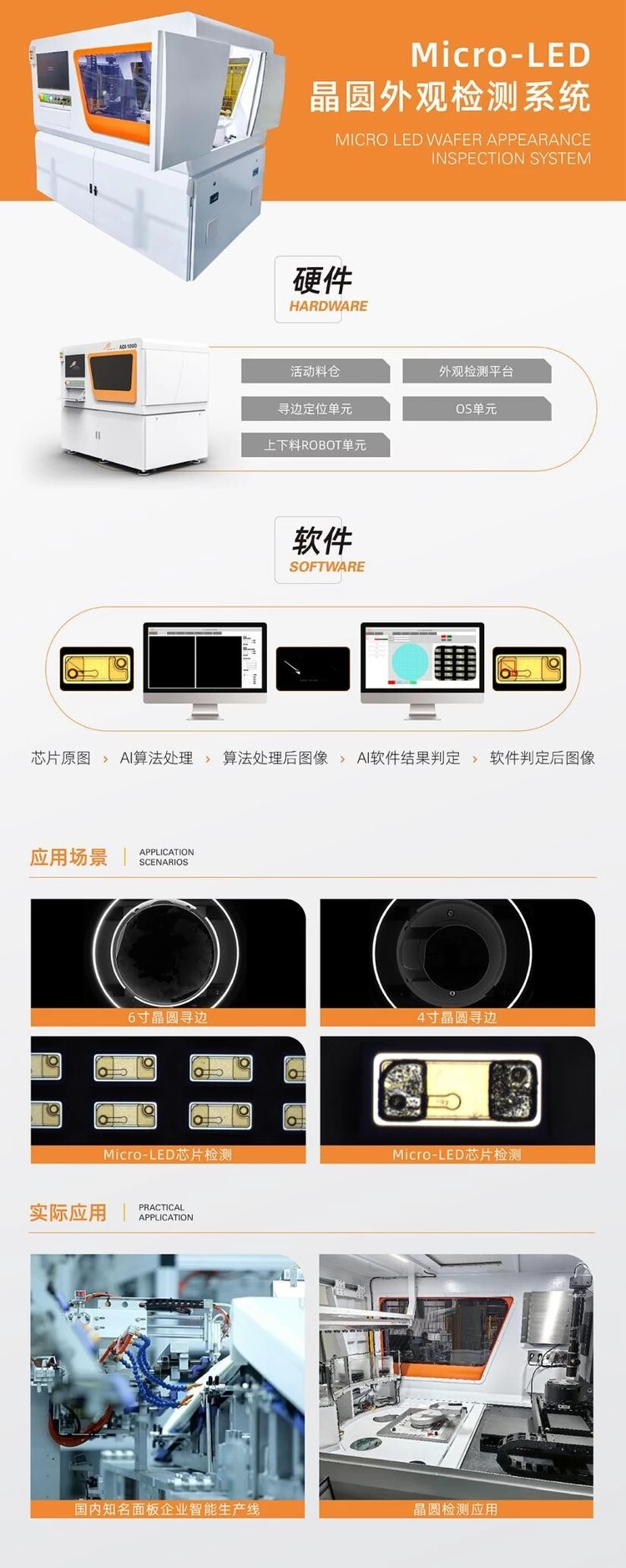 其一,在芯片检测环节,它对数百万颗放在几英寸大小晶圆上、比头发还细的Micro LED芯片的漏检率,小于0.01%,显著提高了芯片缺陷检测效果;其二,在芯片转移环节,其能够引导芯片转移装置将芯片转移精度控制在小于1微米的水平,确保每颗芯片位置都放得准。