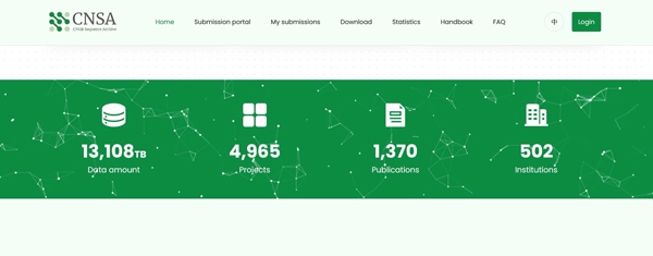 CNGBdb的存储功能由国家基因库序列归档系统(CNSA)负责。CNSA是一个支撑全球组学研究成果汇交和管理的系统,致力于多组学数据(基因组、转录组、代谢组、单细胞和空间转录组等)的开放和共享,为全球科研人员提供更加安全、稳定、可靠、便捷的数据归档服务,促进多组学数据的再利用,推动全球生命科学的发展。