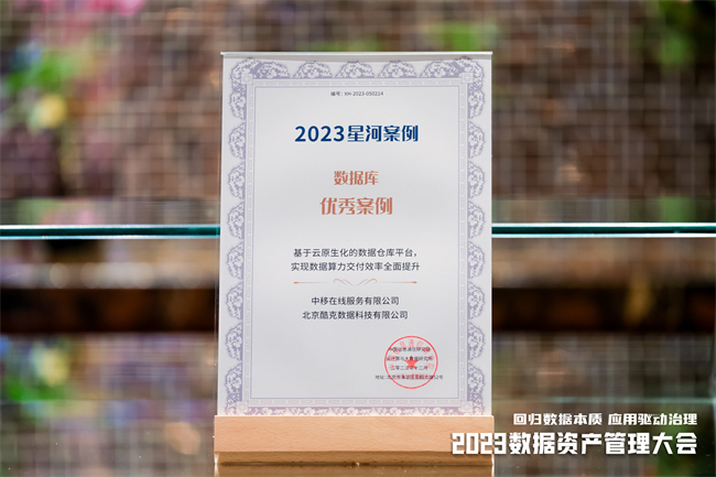 酷克数据携手中移在线入选2023大数据“星河”数据库优秀案例