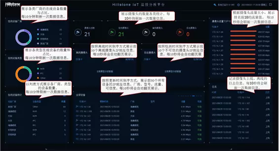 ·防火墙提供大屏展示功能,实时显示当前监测到的IoT资产数量、在离线设备、日志异常以及设备流量等信息,帮助用户快速识别和应对潜在风险。