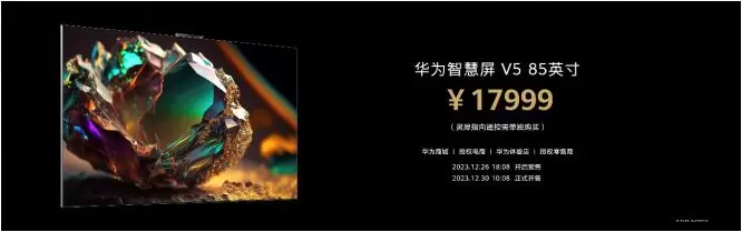 在价格方面,华为智慧屏 V585英寸17999元。全渠道2023年12月26日开启预售,2023年12月30日正式开售。同时,华为智慧屏 V5支持华为智慧屏全质保服务,共有三年期/四年期/五年期可选择,价格分别为998/1698/2498元。届时用户可登录华为商城及各大授权电商平台或前往华为体验店、华为授权零售门店进行选购。