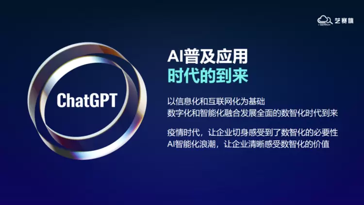 以信息化和互联网化为基础,数字化和智能化融合发展,AI智能化浪潮的到来让企业更加清晰感受到了数智化的价值,未来AI应用有无限的想象空间。从历史上看,科技的改变是一个不断演进的过程,不断的发展和变化带来了巨大的变革,一些人工智能应用已经悄然走出实验室,走入人们的生活,从AI自动作画到虚拟数字人,AI、大模型和GPT的发展正在让科技变得更加亲民,不断提升用户体验,在此背景下,企业需要思考如何在市场中脱颖而出,保持竞争优势。