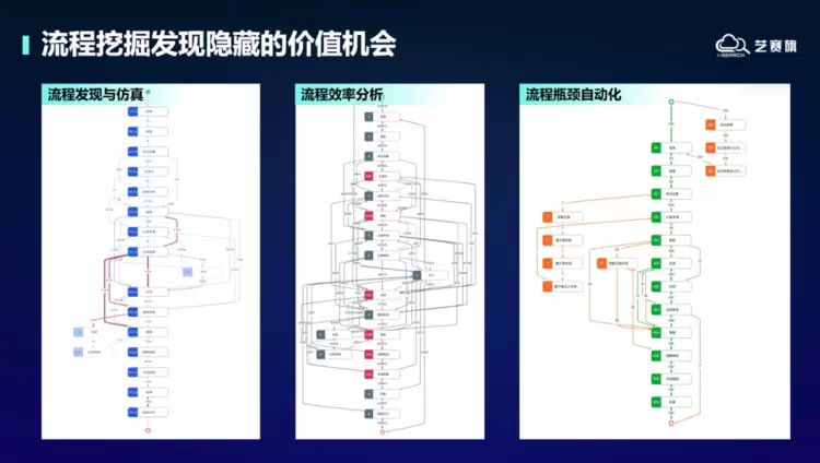 通过流程挖掘,企业可以对端到端流程进行全面分析、优化和重构,迅速识别出其中具有价值的流程,并直观地展示出自动化所带来的投资回报率。这种综合性的技术应用可以为企业创造巨大价值,实现更高效、更具灵活性、更为智能化的业务流程,最大限度地释放数字化潜能,找到更多潜在的自动化机会,为企业打造数字化竞争优势提供全新的战略思路。