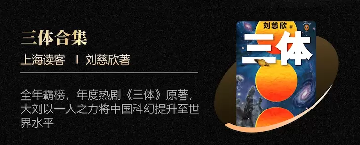 这本刘慈欣的长篇科幻小说是年度热剧《三体》的原著,也是中国乃至亚洲首部获得雨果奖的科幻小说。作品讲述了地球人类文明和三体文明的信息交流、生死搏杀及两个文明在宇宙中的兴衰历程。作为我国科幻小说的里程碑式著作,以其改编的科幻影剧一经上映,便受到观众追捧。越来越多的受众开始关注到经典科幻小说,在其中感受作者对人类命运的前瞻与反思,引发阅读热潮。