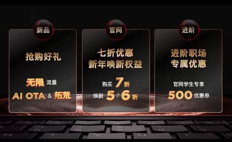ThinkPad黑FUN礼是每年一度粉丝专属节日,更具有超乎想象的宠粉好礼。本次活动上,ThinkPad推出新品福利、会员福利、官网福利三重极致钜惠:针对购买X1 Carbon AI的前1000名用户,提供终身无限数据流量,让AI全时在线;作为全球首款商务 AI PC,ThinkPad X1 Carbon AI将为每一位用户提供AI on阶段的上门及OTA服务,让AI 孪生助手能一直伴随用户,并附赠新机上门拓荒;针对官网会员,购买ThinkPad创新产品,即享“七折”粉丝特惠;并在官网开启最高半价折抵的“新年唤新”专属优惠,以及学生新年500元无门槛抵扣的“新年进阶职场”专属优惠。