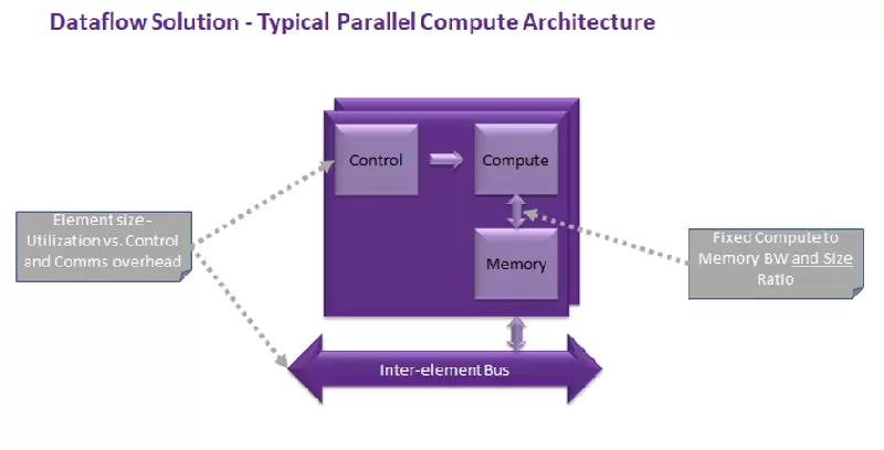 根据Gwenapp的说法,业界希望进行更多的计算和更少的撷取,首先尝试开发宽的单指令/多数据(SIMD)架构。“但是你只能将缓存器档案做得很宽。”业界很快地发现,该解决方案是“直接自动地将数据从计算单元移动到计算单元”。他说,“这是一种称为数据流的通用方法,可以大幅降低von Neumann的开销。”