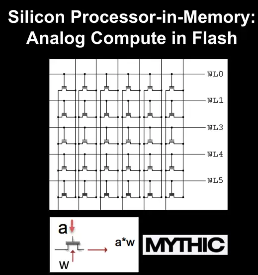 业界开始看到这样的暗示:内存导向的装置是客制深度学习硬件的未来。例如,新创公司Mythic瞄准了将神经网络映像到NOR内存数组。该公司将“内存处理器”(processor-in-memory;PIM)架构用于AI,使其芯片得以在闪存中储存并处理神经网络权重,而其结果(最终和中间)则储存在SRAM中。因为这样的内存数组无需将数据移入和移出外部内存,所以,Mythic承诺将在其芯片中实现性能/功耗的巨大进展。
