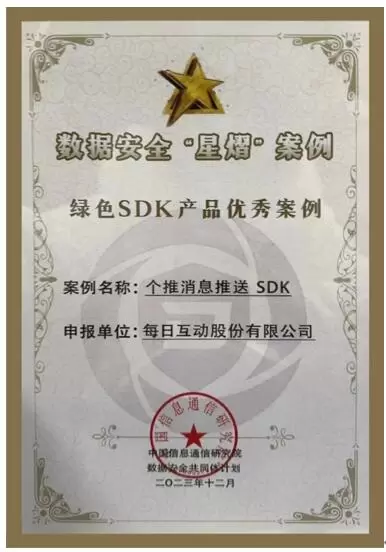 每日互动个推SDK入选中国信通院「星熠」案例,护航行业绿色发展