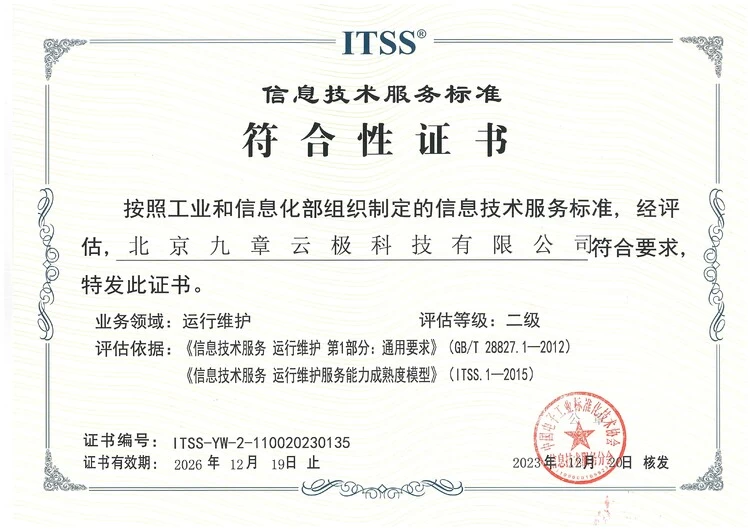 喜讯!九章云极DataCanvas公司顺利通过ITSS运维二级认证