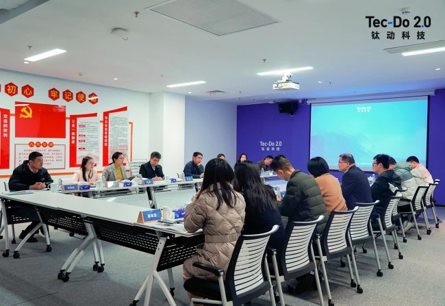 孟岳副司长一行参观了钛动科技总部,钛动科技创始人兼CEO李述昊陪同参观并介绍了公司的发展历程、商业模式与核心技术,以及如何通过商业智能、人工智能和大数据等核心技术的创新和运用赋能中国品牌高质量出海、助力中国外贸数字化、品牌化发展。