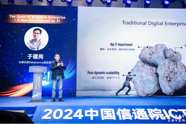 在本次大会上,九章云极DataCanvas公司副总裁于建岗发表“The Dawn of AI-Native Enterprise”主题演讲。他表示,在大模型的全新赋能下,企业的数智化转型之路将迎来颠覆性升级,未来的智能化企业将更好地应用自然语言实现与软件的交互,充分释放员工的个人价值。以实现Natural User Interface(NUI)的全新未来为愿景,九章云极DataCanvas公司基于九章元识大模型打造的Alaya Enterprise(九章云极DataCanvas企业自有AI架构),能够在顶层实现基于九章元识的丰富AI应用开发,例如TableAgent和企业知识管家,助力企业的数智化建设翻开崭新篇章。