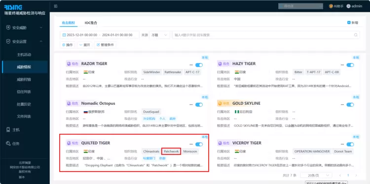 图:瑞星EDR已将Patchwork等攻击组织收录到威胁情报中