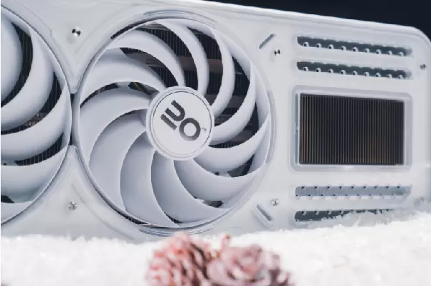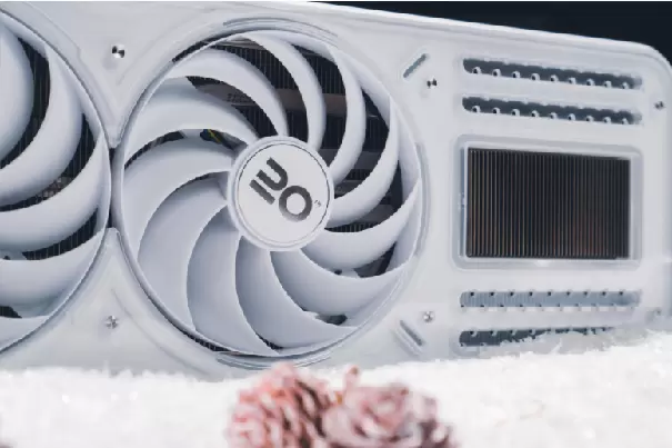 正反两面放置的风扇设计也是影驰 20周年 系列显卡的一大特点。影驰 20 周年 GeForce RTX 4070 纪念版正面设有2个同样大小的2*100MM 正叶风扇,背面则是搭载了一个 1*90MM 的反叶风扇,在提高散热的同时形成了20周年的LOGO字样。风扇均采用20周年特制双面静霜风扇,折角扇叶的设计实现了高流速的进出风循环,加强核心动态频率。支持智能启停技术,随时随地为玩家在体验与负载中收放自如。,满足降温控制显卡温度的同时,给与玩家一个优异的静音游戏空间。