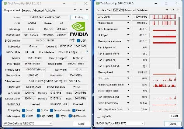 首先是检测软件GPU-Z可看到影驰 20 周年 GeForce RTX 4070 纪念版的产品规格和基本参数,以及其待机温度为 40.1°C,功耗为3.6W。