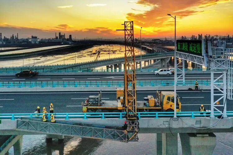 在施工完成后,宁波联通网优技术人员还对杭甬高速复线宁波段沿线进行了多轮实地测试,对相关陆地基站和海上13个基站实施了优化调整,实现5G信号覆盖最优、网速最快。2023年12月27日,宁波联通在海上新建的13个基站并网开通投入正式使用,这意味着联通圆满完成了枢纽和沿线网络建设工作,为杭甬高速复线打造成为中国首条海上“智慧高速”提供了可靠的网络支撑。