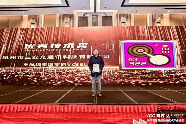 2023年12月28日,第十届第十届讯石英雄榜(The 2023 Infostone Awards)在2023首届苏州光电技术产业论坛上隆重发布。三安光通讯的产品"宇航级宽温高速VCSEL"以先进的技术和性能,斩获讯石英雄榜优秀技术奖。