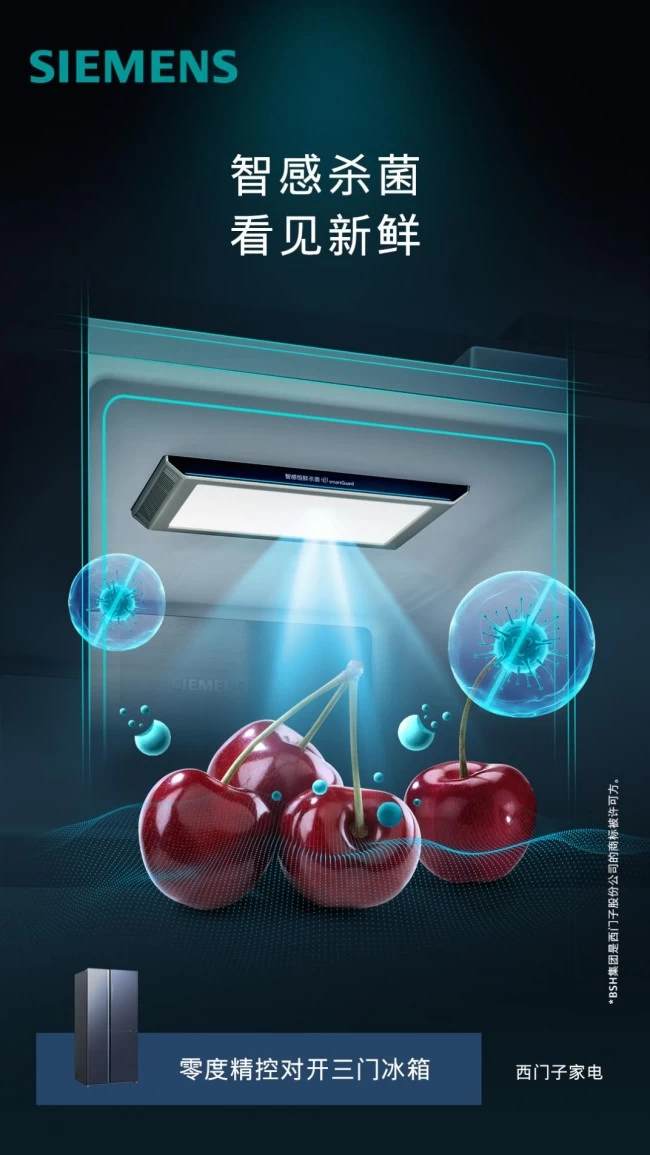西门子智感精控零度对开门冰箱eNose99.9%抗菌,让美味自然如初回归新鲜