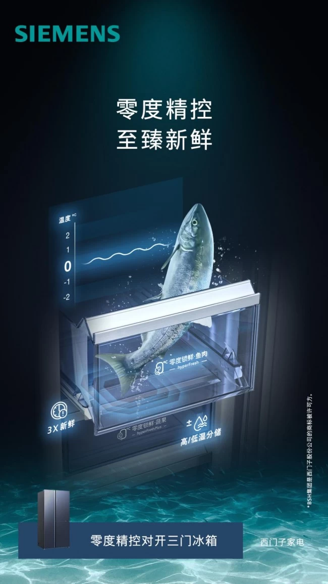 在健康意识驱动之下,消费者对美食的要求提高,注重食材的营养价值和原鲜本味。冰箱是否具备长效保鲜、智能锁鲜等多重功能,将成为新一代消费群体选购时的重要考量因素。西门子家电以全新产品再次证明自身的储鲜领先实力,重磅推出西门子智感精控零度对开门冰箱,实现多项智能科技突破。其中,新品搭载备受瞩目与赞誉的专利零度鲜藏技术,历经7代迭新、延长三倍保鲜时长,并配置eNose智感杀菌创新科技除菌除味,更打造臻品专属空间,为消费者解锁智能储鲜全新体验。