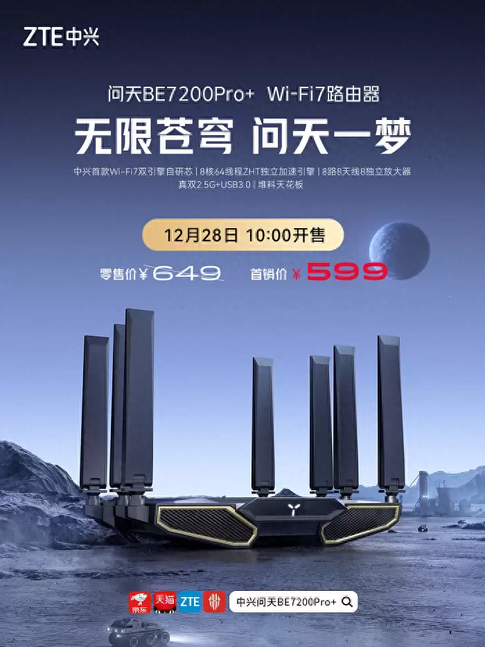 中兴路由器再推质价比小钢炮,问天BE7200Pro+已开售