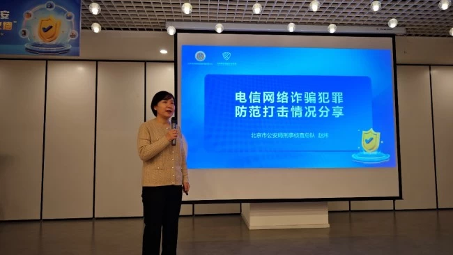 活动现场,北京市公安局刑侦总队赵炜警官、苏兴博警官也为与会人员分享了电信网络诈骗犯罪情况和防范建议。