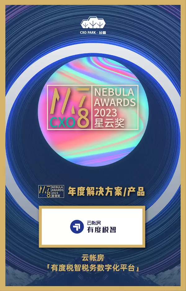 本次办方「CXO公园」以“韧性之美”赞许获奖企业及产品。作为专注于企业税务数字化的品牌,有度税智以在该领域的执着苦旅展现了“韧性之美”,闪耀在商业“星云”的环抱之中。未来,有度税智将以与时俱新、追求卓越的品牌价值,在企业税务数字化之路上持续耕耘。