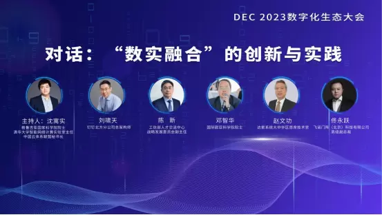 工信部人才交流中心战略发展委员会副主任陈新,格鲁吉亚国家科学院外籍院士、清华大学智能网络计算实验室主任、中国云体系联盟秘书长沈寓实,国际欧亚科学院院士邓智华、达索系统大中华区首席技术官赵文功,钉钉北方分公司总架构师刘啸天,飞诺门阵(北京)科技有限公司高级副总裁佟永跃就“‘数实融合’的创新与实践”话题进行了对话。