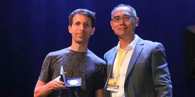 IJCAI理事会主席杨强为AlphaGo团队代表David Silver颁发马文·明斯基奖章