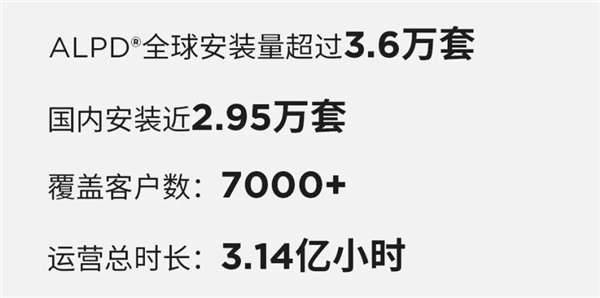自2016年正式面向市场推出。截至2023年12月,ALPD半导体激光放映解决方案的国内市场安装量已超过2.95万套,市占率远超三分之一,而全球安装量也已突破3.6万套。运行总时长超3.14亿小时。正在切实帮助众多影院大幅提升放映亮度和放映品质。