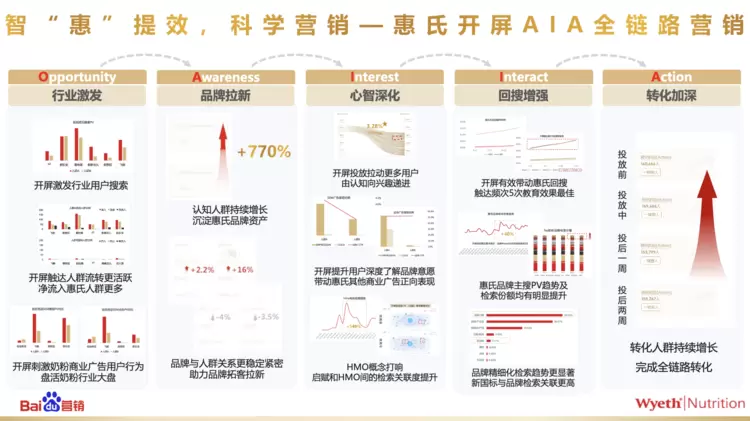 经「营销科学AIA」的价值验证,百度开屏在行业激发、品牌拉新、心智深化、回搜增强、转化加深等维度都展现了对惠氏品牌的重要价值,AIA链路也获得了品牌、代理等多方认可,进一步推动了百度开屏在母婴行业多面开花稳定投放。