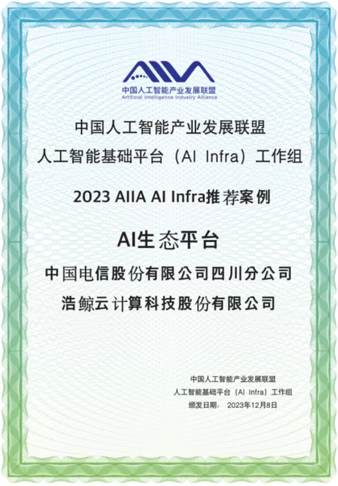 携手四川电信以“AI生态平台”,于近期荣获中国人工智能产业发展联盟人工智能基础平台 (Al Infra)推荐案例,并入选中国信通院大规模预训练模型优秀应用案例、“星河”案例奖;