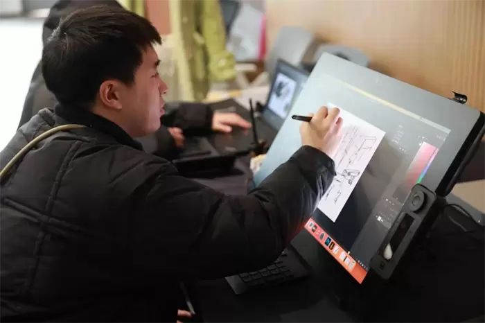 活动现场的体验区,Xencelabs马蒂斯数位屏24、Xencelabs马蒂斯中型数位板套装、Xencelabs马蒂斯中型数位板套装星云白等数位屏板产品为师生们提供了非凡的数字艺术创作体验。