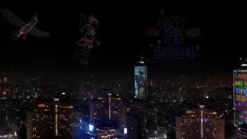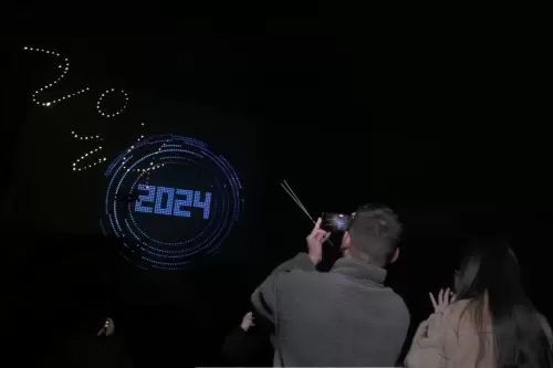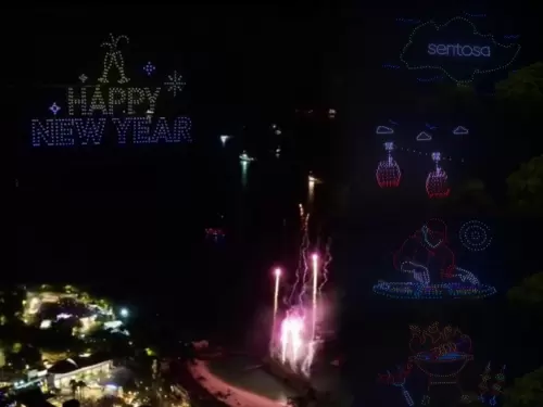 在新加坡圣淘沙西乐索海滩,500架无人机演绎出了圣淘沙标志性景观,伴随活动主题又变换出了DJ打碟、野餐聚会等图案,在倒计时和干杯声中迎来2024。